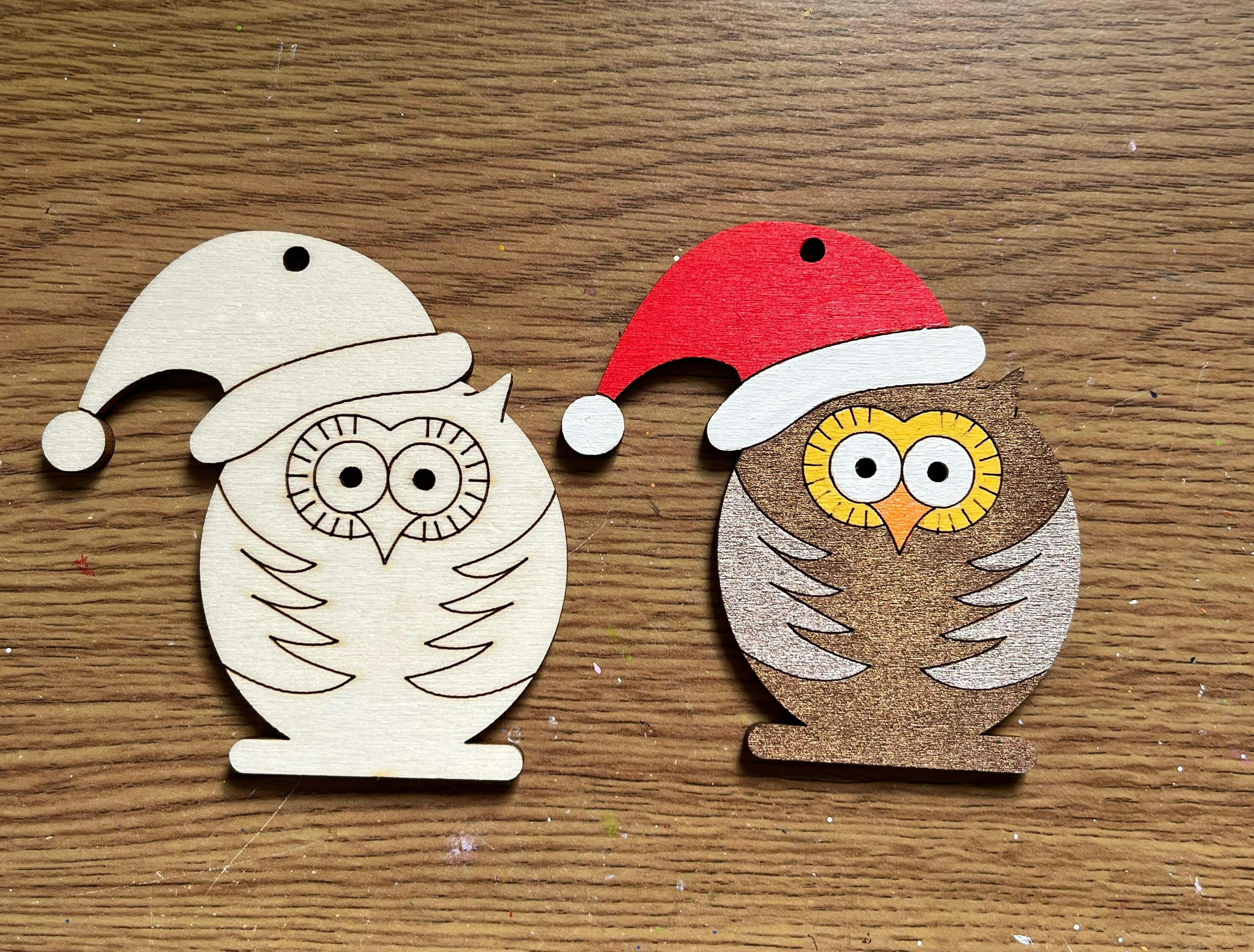 Create unique craft projects with our versatile 4mm thick plywood Xmas Owls shape. Made in the UK using precision laser cutters. They come in many sizes and quantities with generous discounts added for bulk orders. Perfect for all your art and craft needs. Our Xmas Owls wooden blank is a must for any crafting cupboard.
