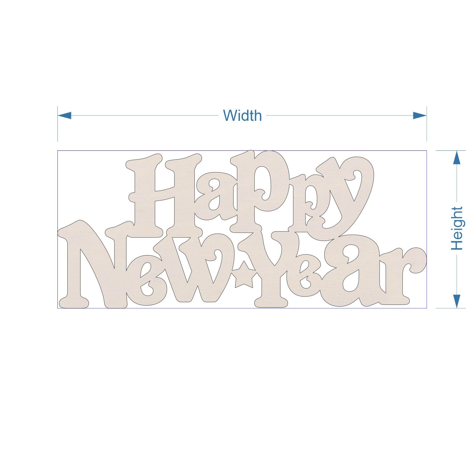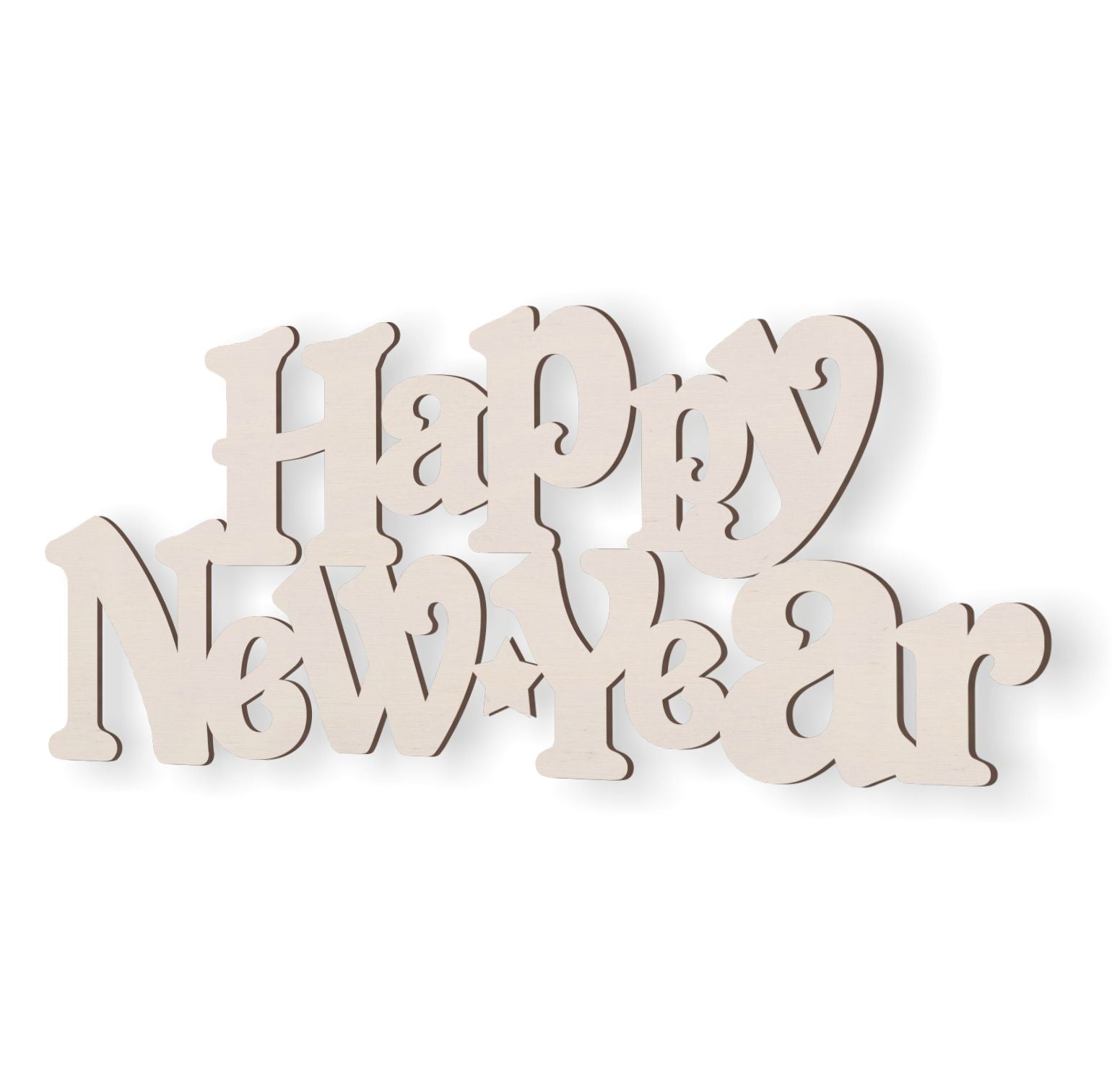 Wooden "Happy New Year" text - craft blank cut from 4mm thick plywood